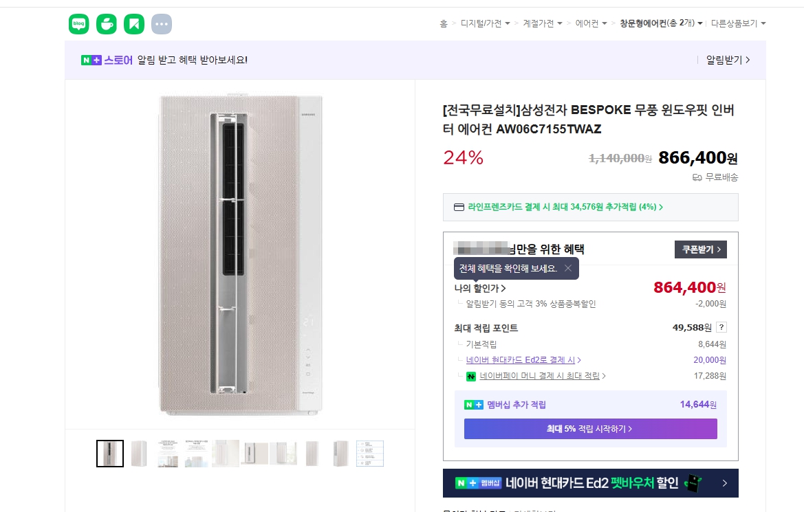 1. 삼성 윈도우핏 인버터 창문형 에어컨
