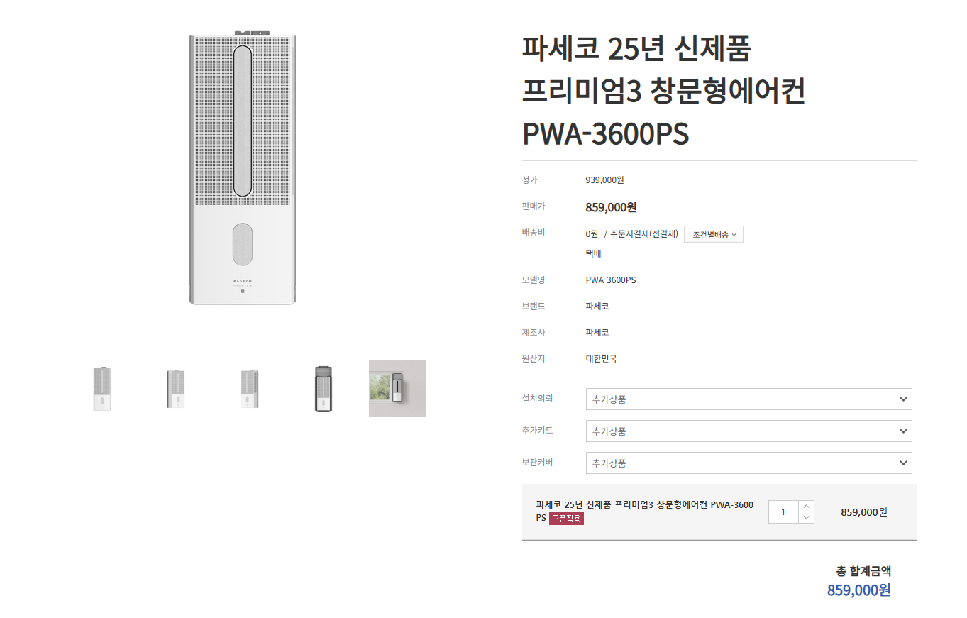 3. 파세코 창문형 에어컨 3세대