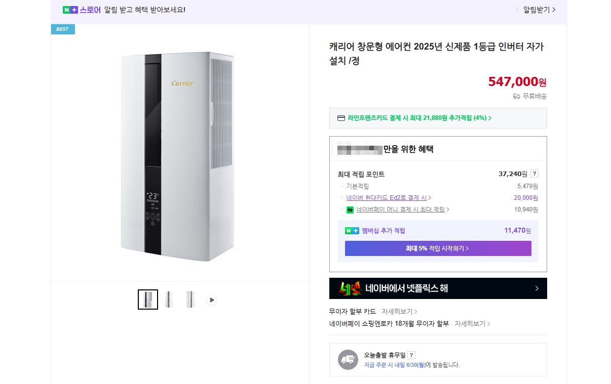 4. 캐리어 창문형 에어컨